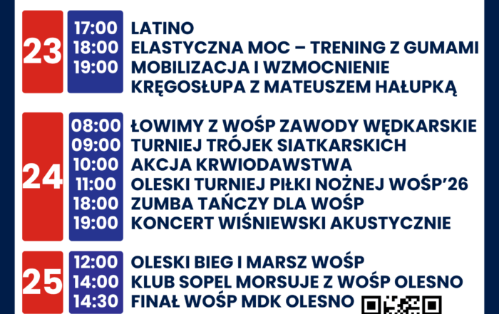 Kalendarz wydarzeń WOŚP na dni 23-25 stycznia