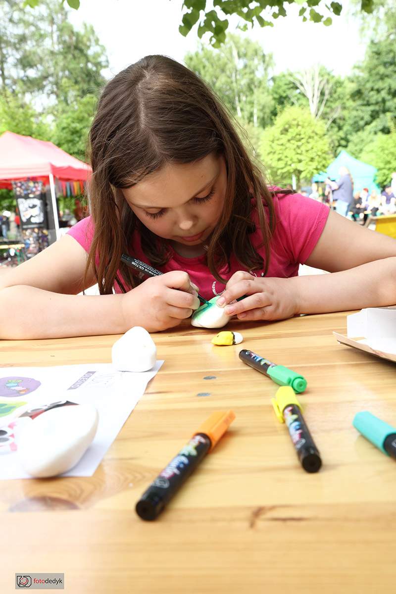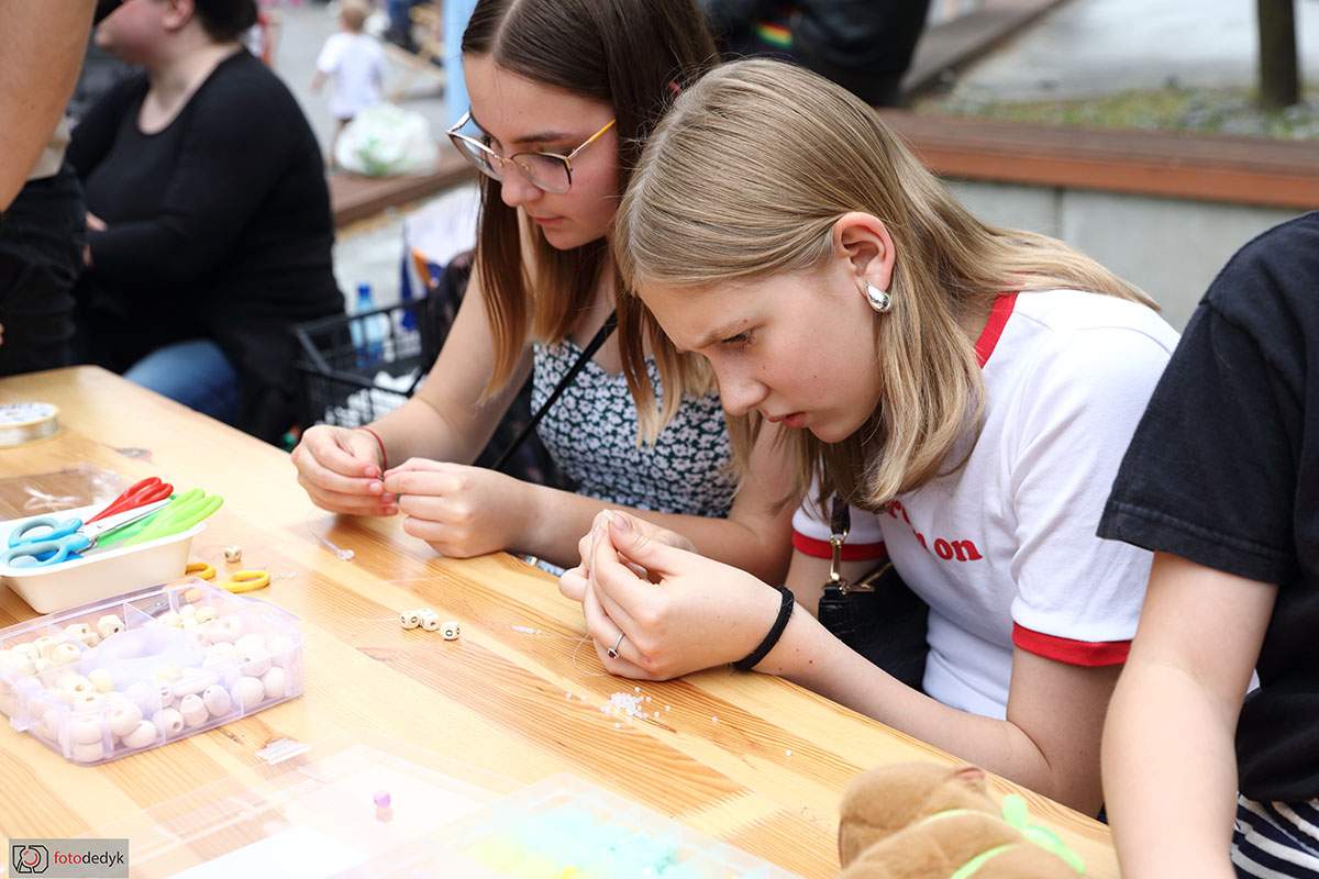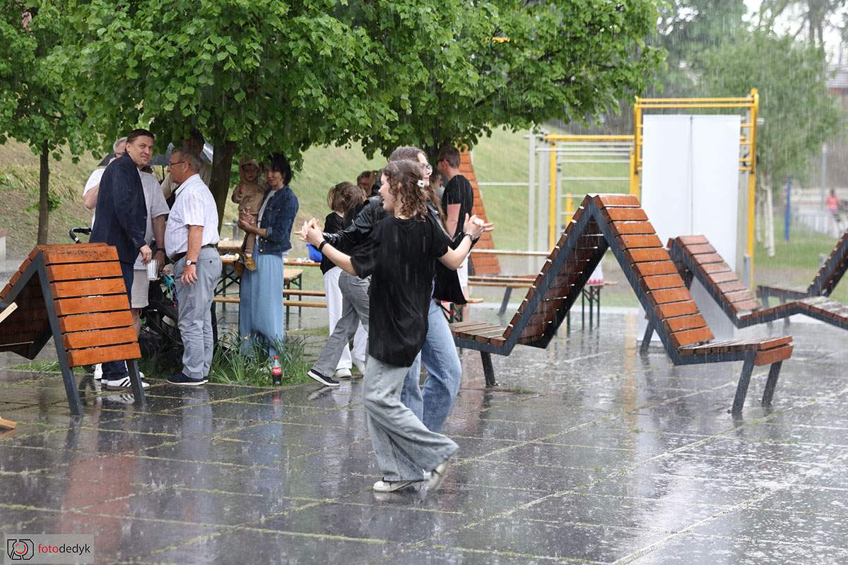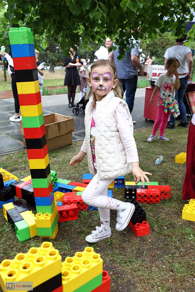Spacerując po Promenadzie, można było przy okazji zjeść trochę pyszności przygotowanych przez Koło Gospodyń Wiejskich z Leśnej i Boroszowa. Straż pożarna zorganizowała stoisko, na którym ochotnicy mogli założyć najróżniejsze kombinezony, a Policja Olesno zaprezentowała służbowy motocykl i przeprowadziła mały quiz z zainteresowanymi uczestnikami. Najwięcej jednak atrakcji czekało na najmłodszych: dmuchańce, animacje, bańki XXL, malowanie twarzy, a także warsztaty artystyczne z malowaniem kamieni, kolorowaniem dłuuuuugiej kolorowanki i robieniem bransoletek. Kiedy już mieliśmy przejść do tanecznej części pikniku, przypomniała sobie o nas pogoda i lunął majowy deszcz