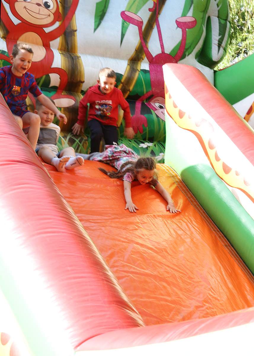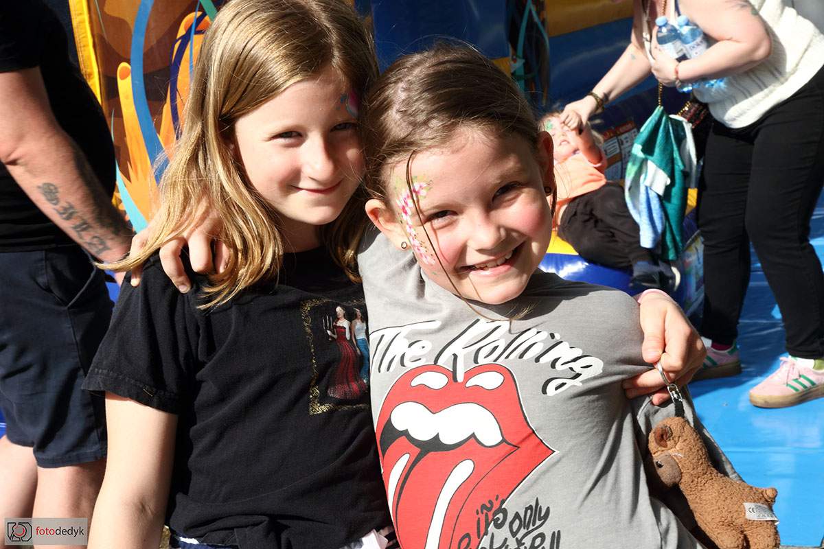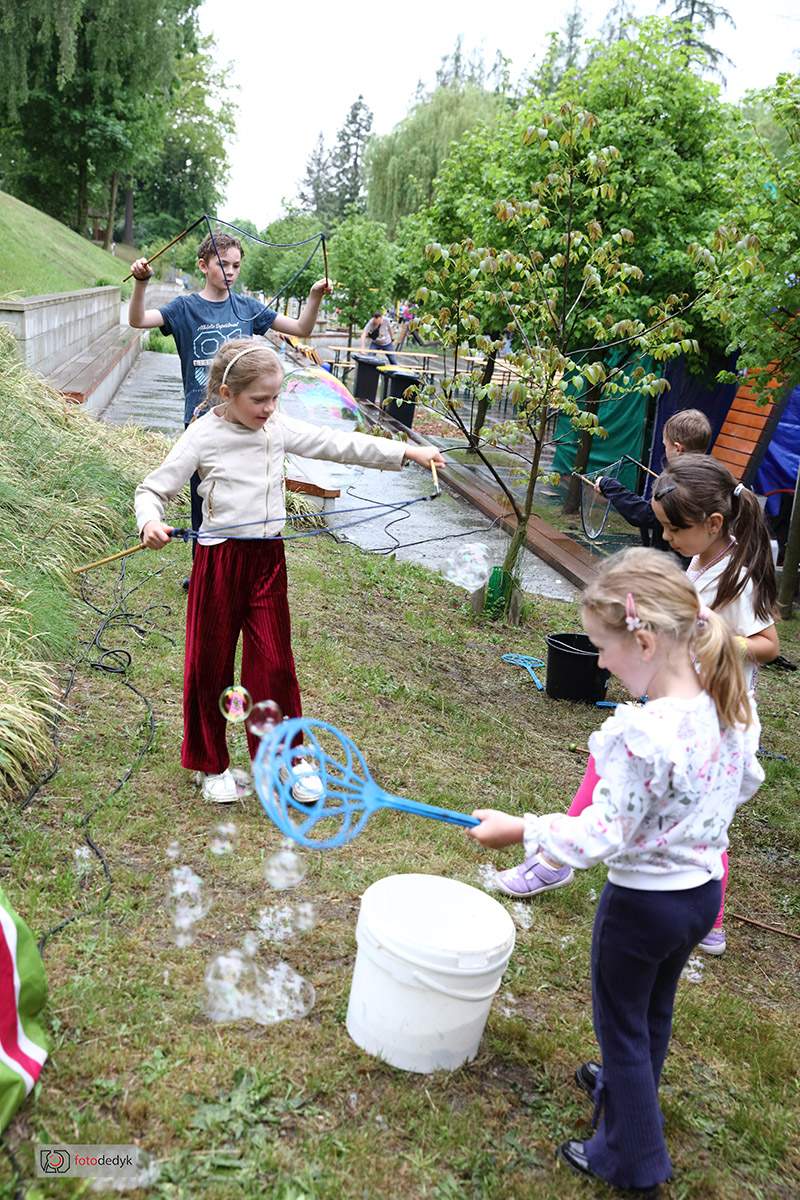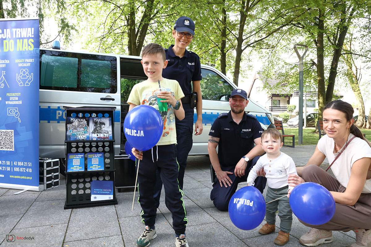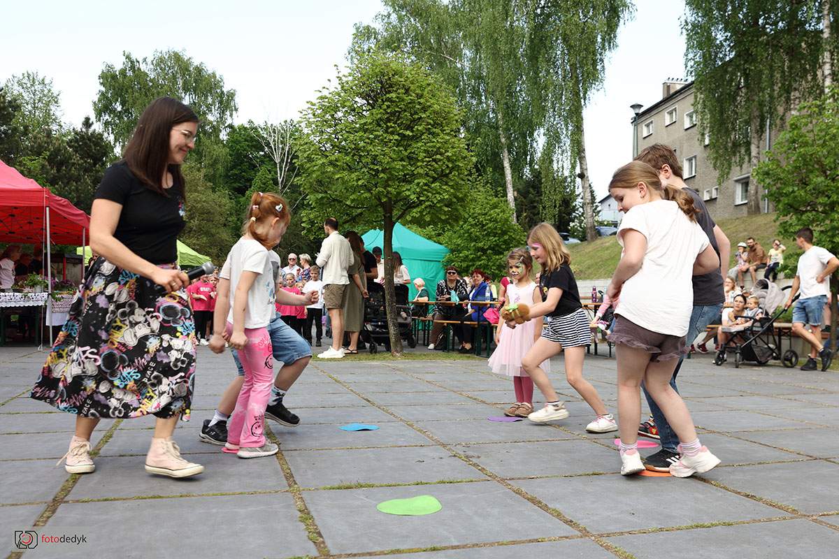 Spacerując po Promenadzie, można było przy okazji zjeść trochę pyszności przygotowanych przez Koło Gospodyń Wiejskich z Leśnej i Boroszowa. Straż pożarna zorganizowała stoisko, na którym ochotnicy mogli założyć najróżniejsze kombinezony, a Policja Olesno zaprezentowała służbowy motocykl i przeprowadziła mały quiz z zainteresowanymi uczestnikami. Najwięcej jednak atrakcji czekało na najmłodszych: dmuchańce, animacje, bańki XXL, malowanie twarzy, a także warsztaty artystyczne z malowaniem kamieni, kolorowaniem dłuuuuugiej kolorowanki i robieniem bransoletek. Kiedy już mieliśmy przejść do tanecznej części pikniku, przypomniała sobie o nas pogoda i lunął majowy deszcz