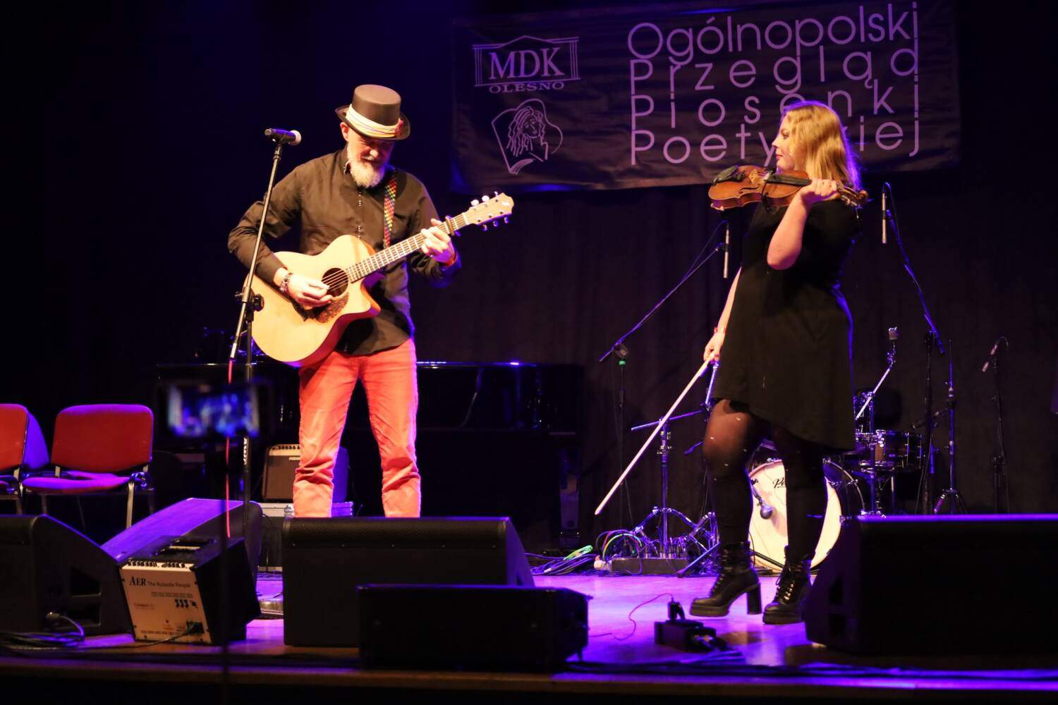 Chociaż 26. Ogólnopolski Przegląd Piosenki Poetyckiej stał się już wspomnieniem, nadal jego echo wybrzmiewa w murach MDK. Dotąd udostępnialiśmy zdjęcia głównie z koncertu laureatów i występu gościa wieczoru, jednak czas zajrzeć za kulisy. Bo to właśnie tam kryje się prawdziwe serce tego przeglądu.
