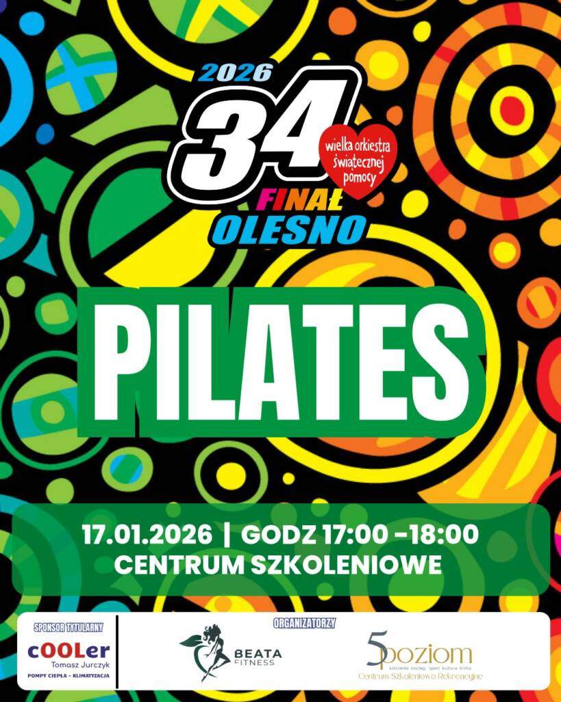Pilates z Beatą – WOŚP Pilates z Beatą – chwila uważności i ruchu z sercem Pilates z Beatą to świadome spotkanie z ciałem — pełne uważności, oddechu i wewnętrznego spokoju. To przestrzeń, w której pracujemy nie tylko z mięśniami, ale także z umysłem i duszą Dołącz do nas, zadbaj o siebie i pomóż innym Gramy do końca świata i jeden dzień dłużej! Anna Mann2026-01-14T08:12:02+00:00 Podziel się tym ze znajomymi! FacebookXRedditLinkedInWhatsAppTumblrPinterestVkXingEmail Podobne wpisy Aukcje WOŚP Zumba tańczy dla WOŚP Oleski Turniej Piłki Nożnej – WOŚP Mobilizacja i wzmocnienie kręgosłupa – WOŚP Akcja krwiodawstwa – WOŚP Kalendarz wydarzeń WOŚP na dni 23-25 stycznia Latino Solo – zatańcz z WOŚP Kalendarz wydarzeń WOŚP na dni 16-21 stycznia Stretching dla dzieci – WOŚP Aquafitness dla WOŚP Papaya x WOŚP Charyzma dla WOŚP