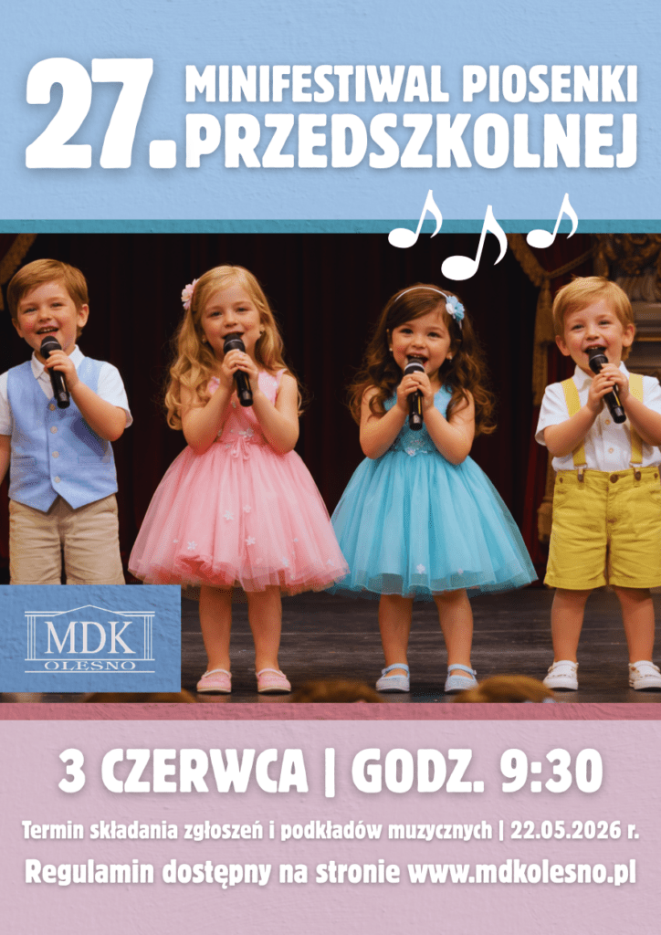 Powoli, powolutku nadchodzi czas najmłodszych! 3 czerwca odbędzie się 27. Minifestiwal Piosenki Przedszkolnej. Zapraszamy, zachęcamy i czekamy.