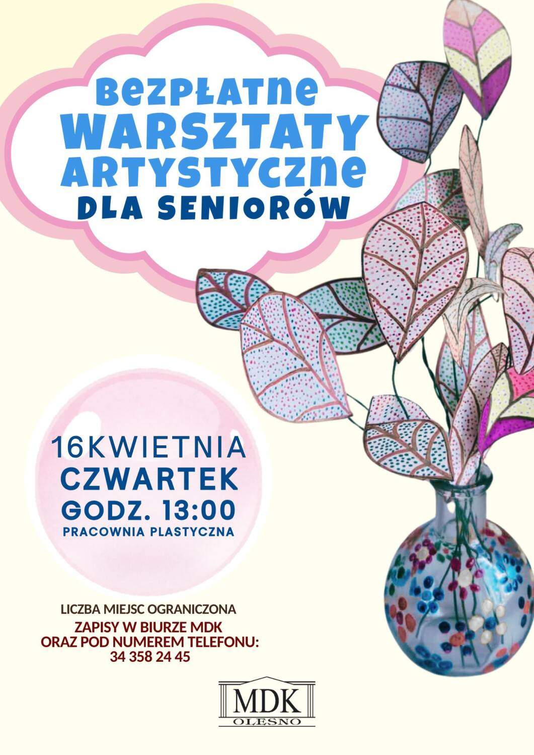 Zapraszamy na bezpłatne warsztaty artystyczne dla seniorów.