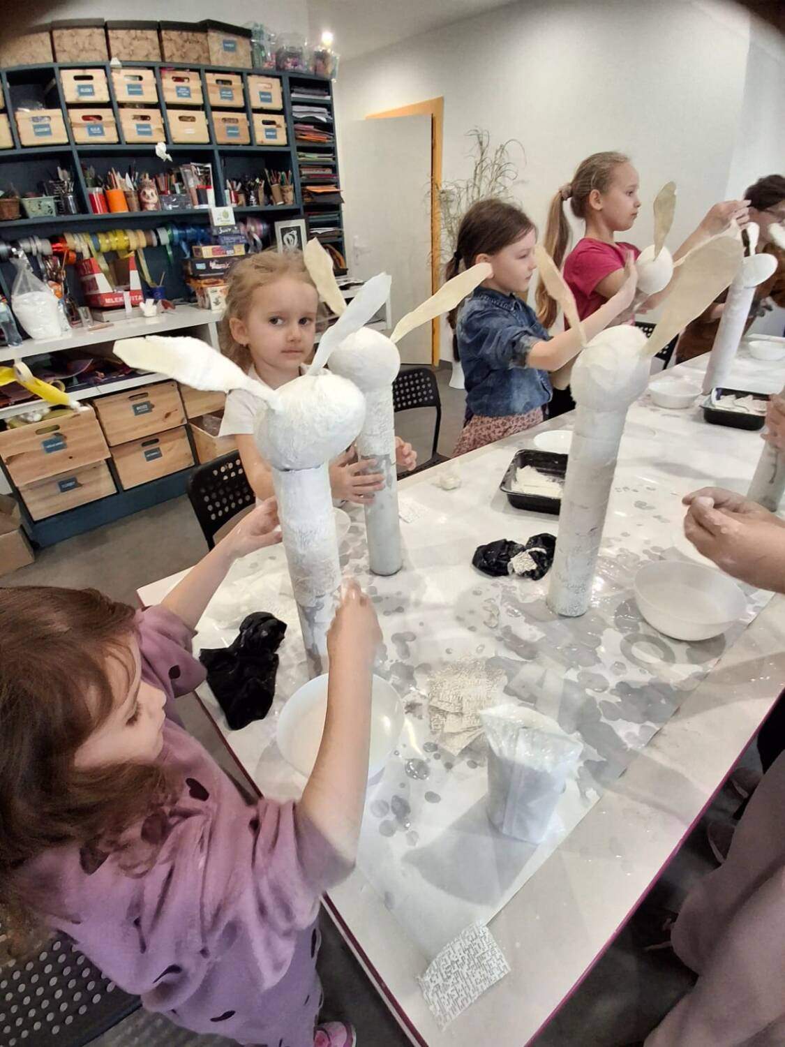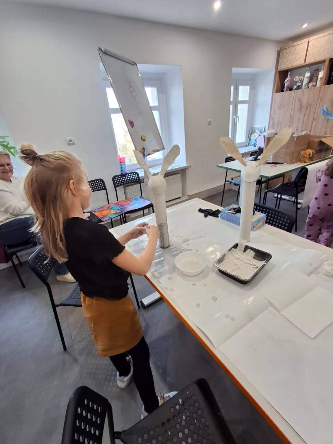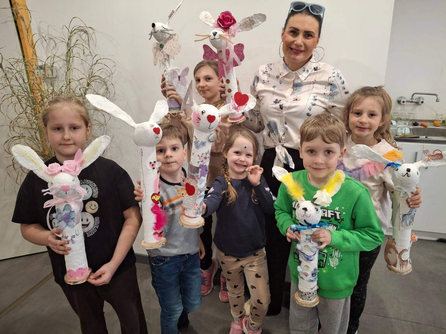 Zające wielkanocne zostały wykonane z bandaży gipsowych, ozdobione mnóstwem kreatywności i niezwykłą, dziecięcą fantazją 🌸