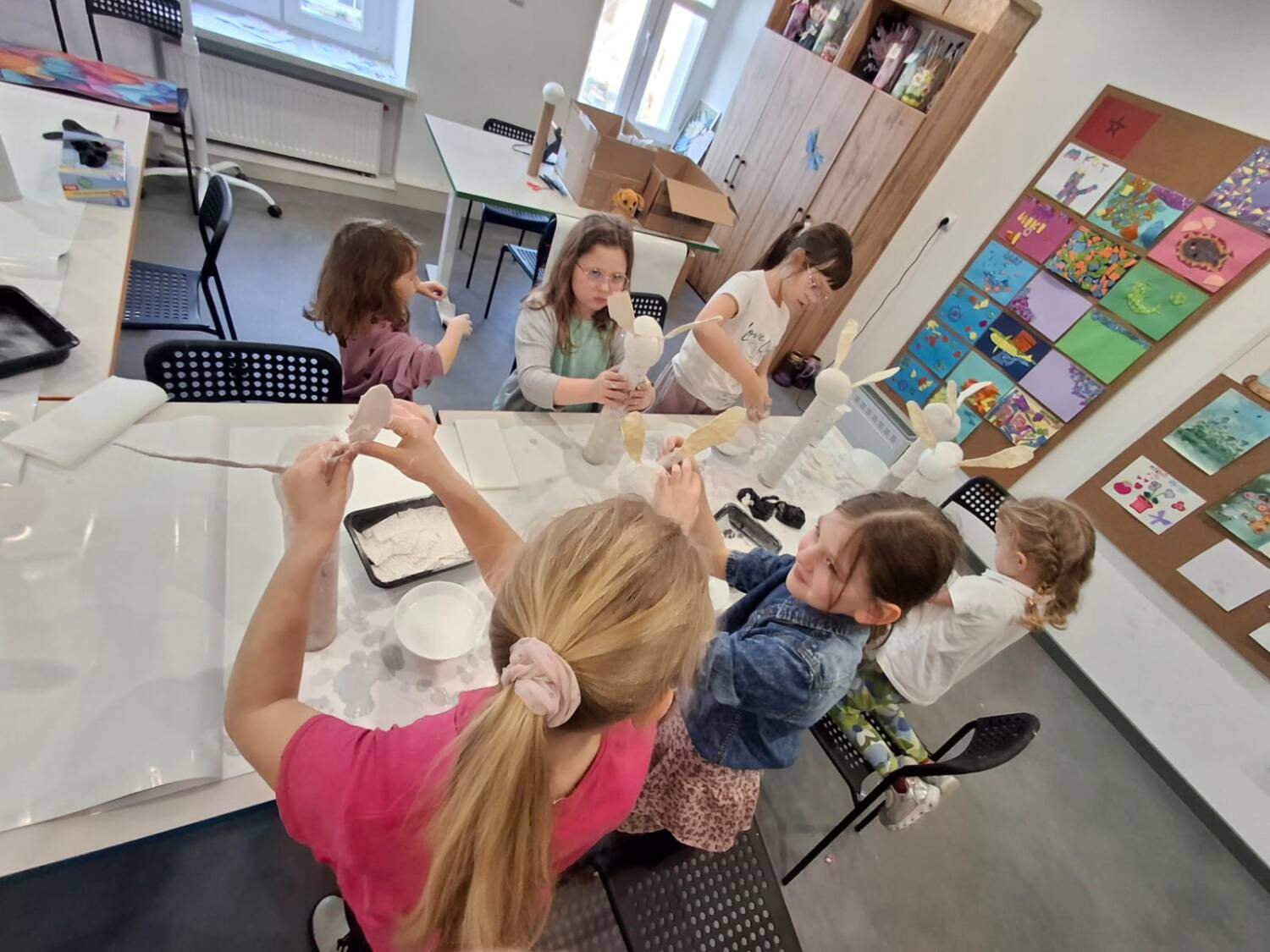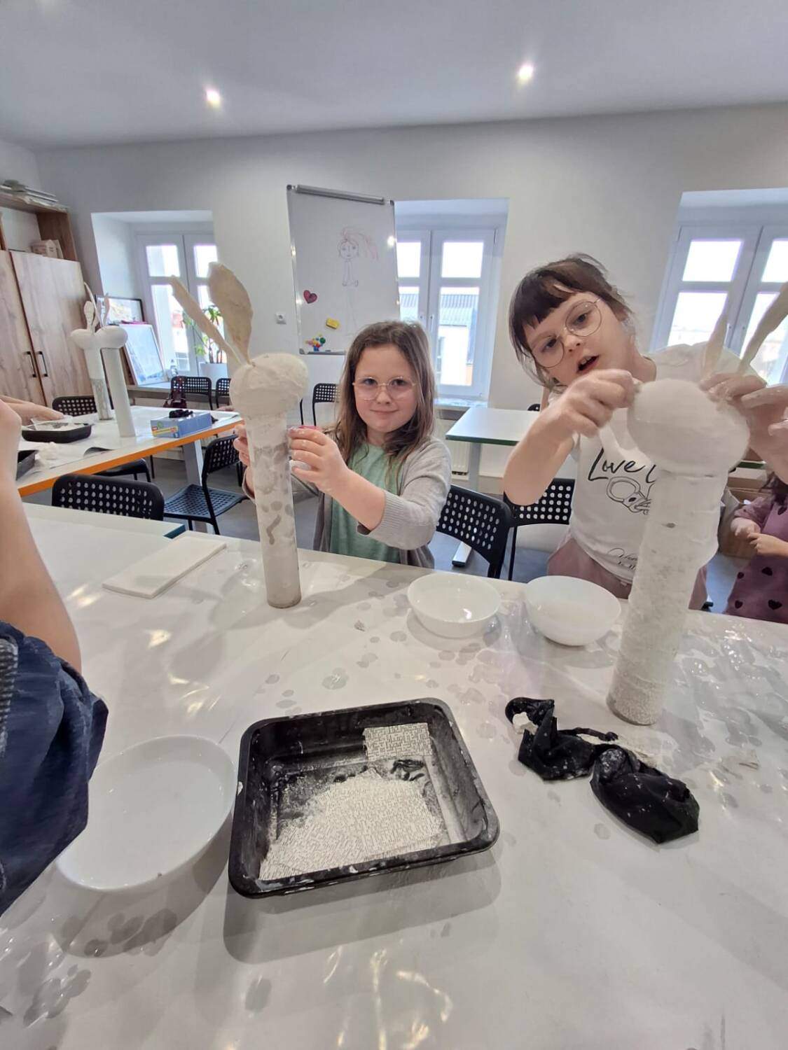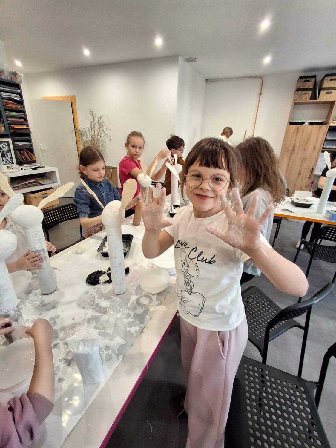 Zające wielkanocne zostały wykonane z bandaży gipsowych, ozdobione mnóstwem kreatywności i niezwykłą, dziecięcą fantazją 🌸