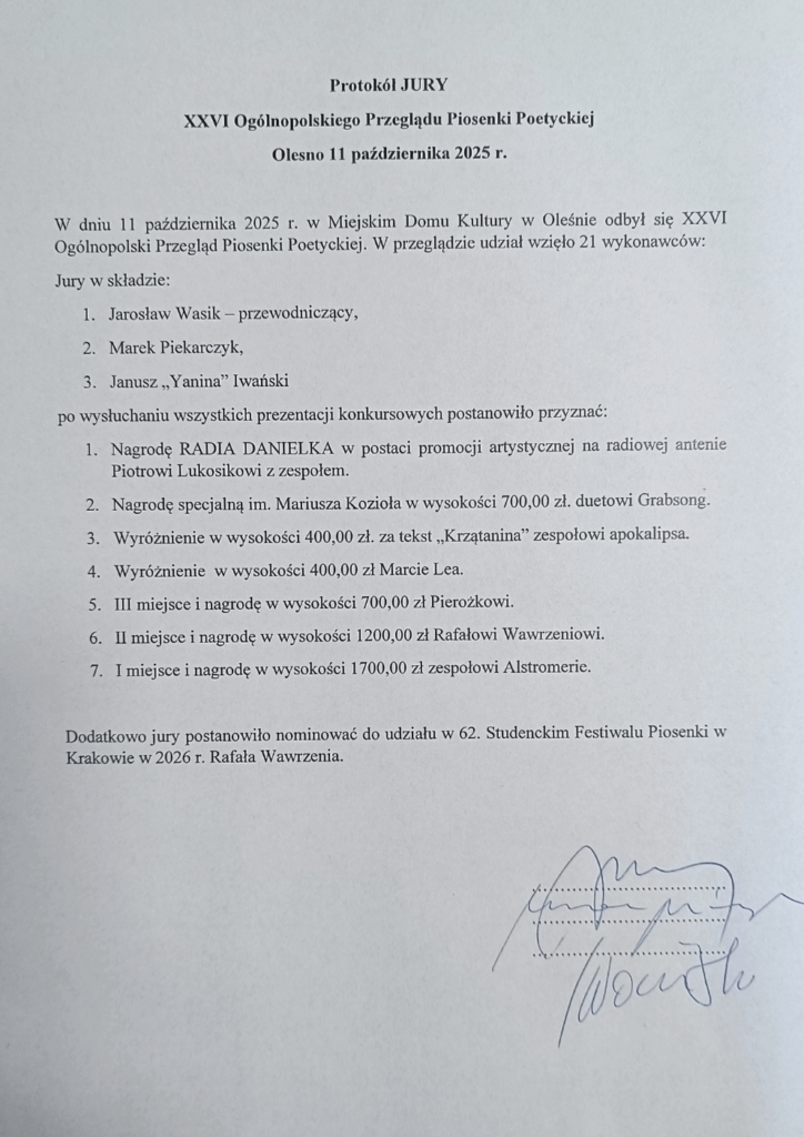 26. Ogólnopolski Przegląd Piosenki Poetyckiej w Oleśnie
